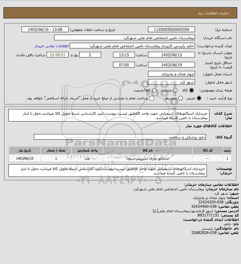 نام دستگاه خریدار:بیمارستان تامین اجتماعی امام علی شهرکرد
