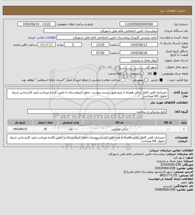 نام دستگاه خریدار:بیمارستان تامین اجتماعی امام علی شهرکرد