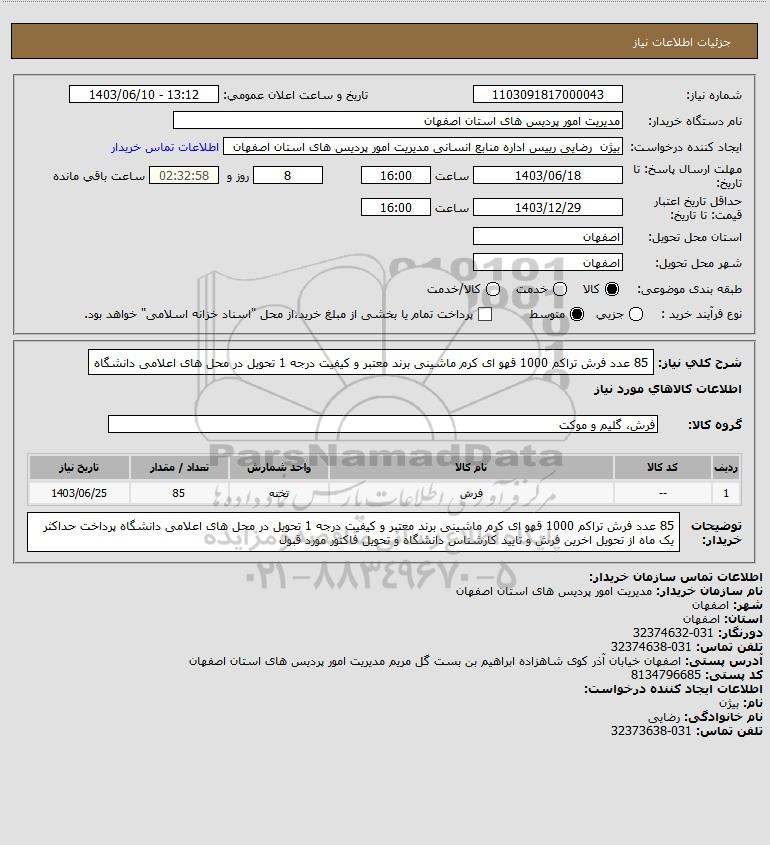 نام دستگاه خریدار:مدیریت امور پردیس های استان اصفهان