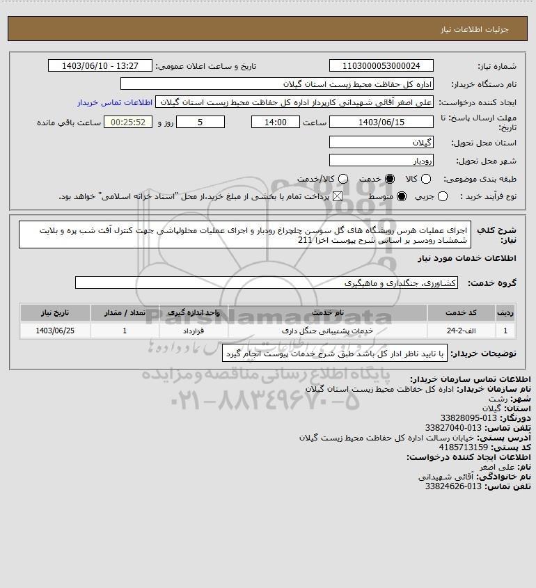 نام دستگاه خریدار:اداره کل حفاظت محیط زیست استان گیلان