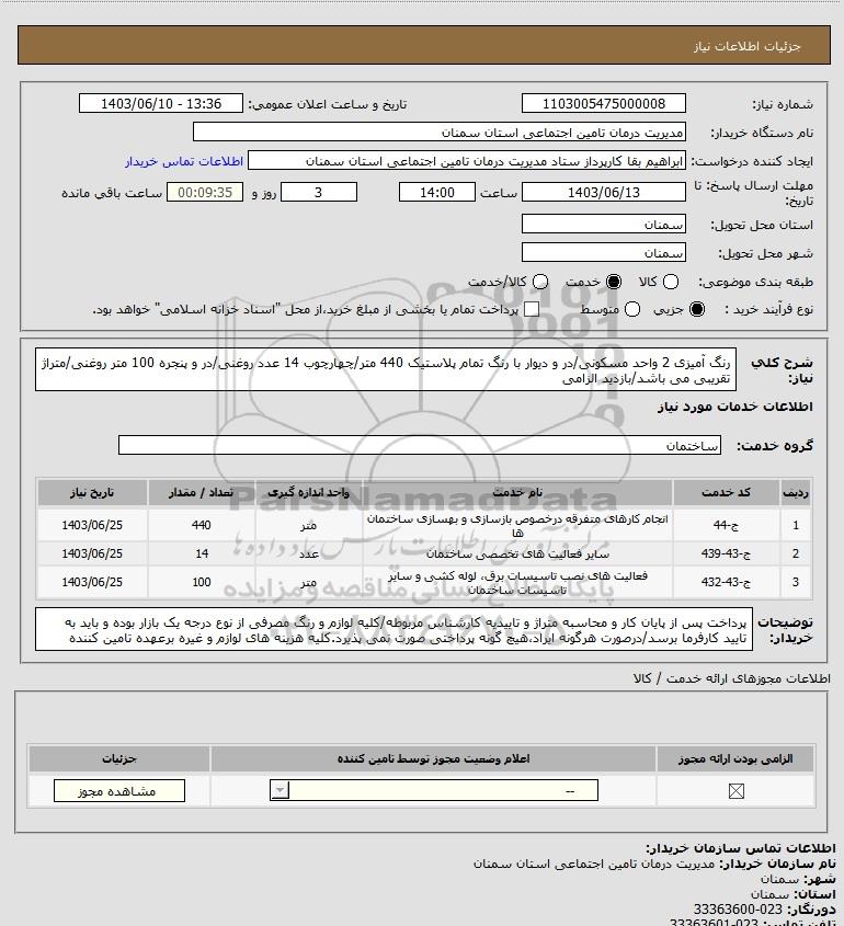 نام دستگاه خریدار:مدیریت درمان تامین اجتماعی استان سمنان