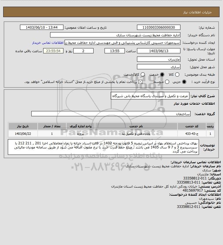 استعلام مرمت و تکمیل و سربندی پاسگاه محیط بانی شیرگاه, استعلام مرمت و تکمیل و سربندی پاسگاه محیط بانی شیرگاه