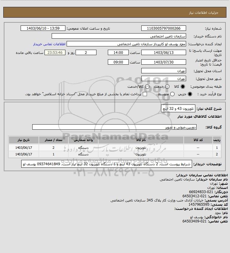 شرح کلی نیاز: تلویزیون 43 و 32 اینچ
