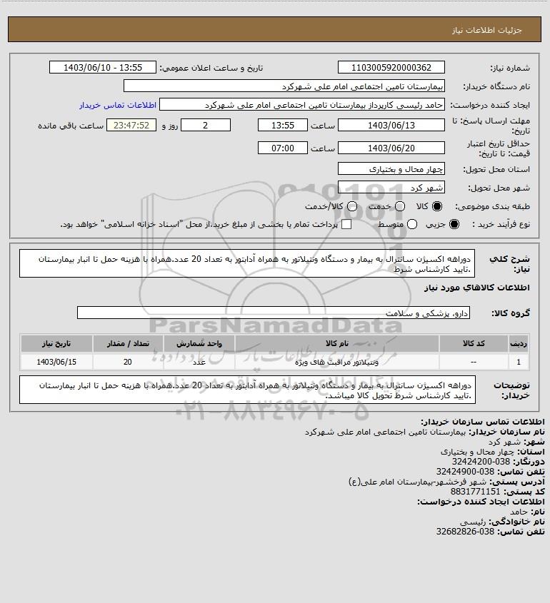 نام دستگاه خریدار:بیمارستان تامین اجتماعی امام علی شهرکرد
