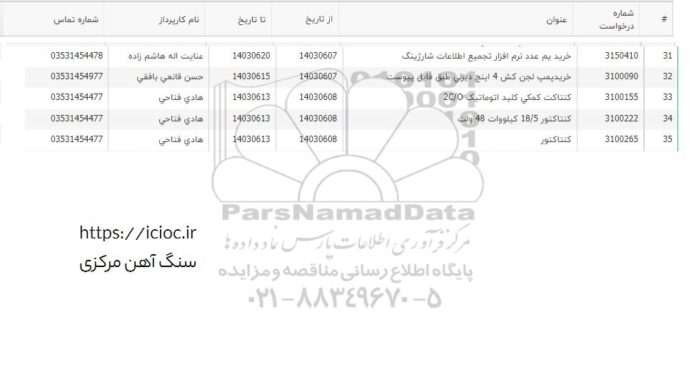 | 3100265 | کنتاکتور | 1403.06.08 | 1403.06.13 | هادی فتاحی | 03531454477 |