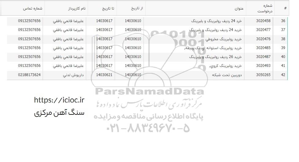 3020487 خرید 26 ردیف رولبرینگ و بلبرینگ 1403.6.17 علیرضا قانعی بافقی  09132507656