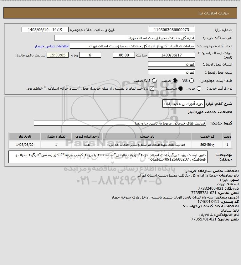 شرح کلی نیاز: دوره آموزشی محیط بانان