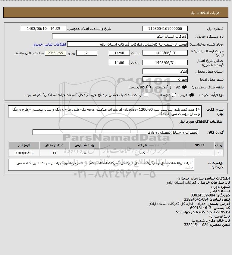 استعلام 14 عدد کمد بلند اینترست تیپ 90-1206 -abadise- ام دی اف ملامینه درجه یک- طبق طرح و رنگ و سایز پیوستی-(طرح و رنگ و سایز پیوست می باشد), استعلام 14 عدد کمد بلند اینترست تیپ 90-1206 -abadise- ام دی اف ملامینه درجه یک- طبق طرح و رنگ و سایز پیوستی-(طرح و رنگ و سایز پیوست می باشد)
