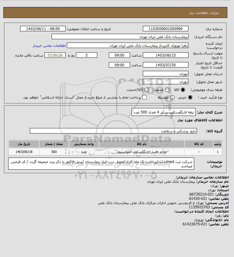 نام دستگاه خریدار:بیمارستان بانک ملی ایران تهران