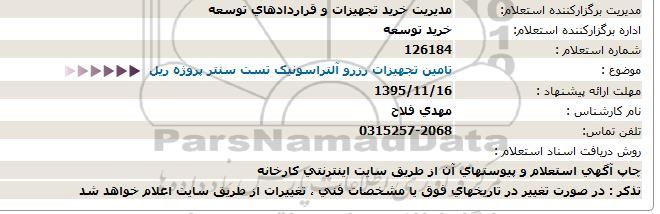 استعلام تامین تجهیزات رزرو آلتراسونیک, استعلام ، استعلام تامین تجهیزات رزرو آلتراسونیک