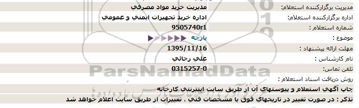 اداره برگزارکننده استعلام: اداره خرید تجهیزات ایمنی و عمومی