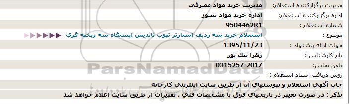 اداره برگزارکننده استعلام: اداره خرید مواد نسوز