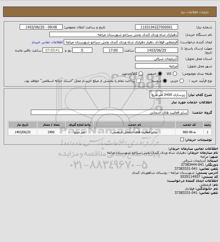 شرح کلی نیاز: زیرسازی 2400 متر مربع