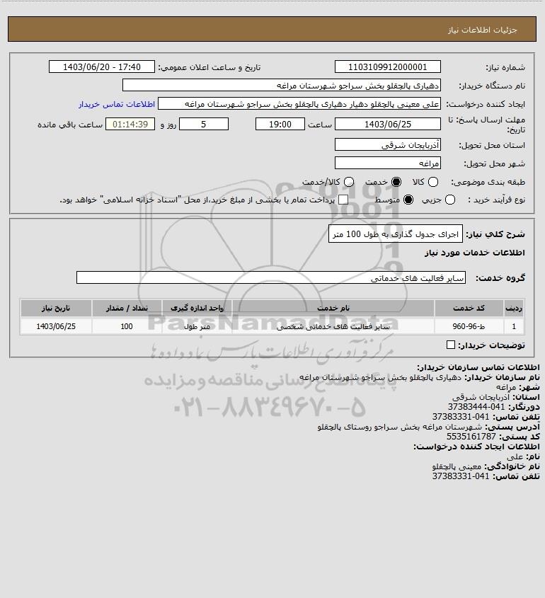 شرح کلی نیاز: اجرای جدول گذاری به طول 100 متر