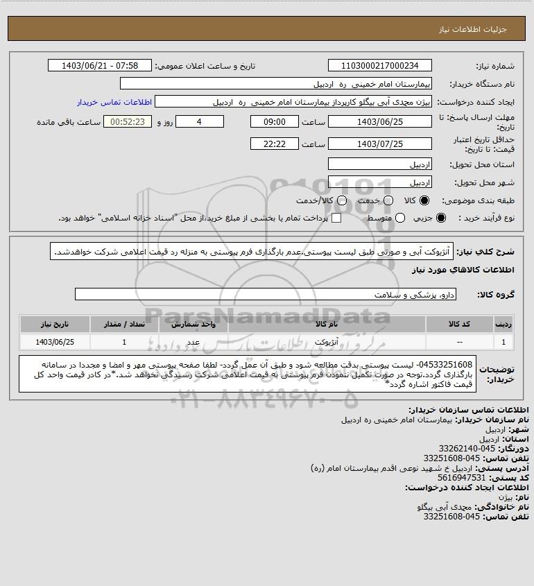 نام دستگاه خریدار:بیمارستان امام خمینی ره اردبیل