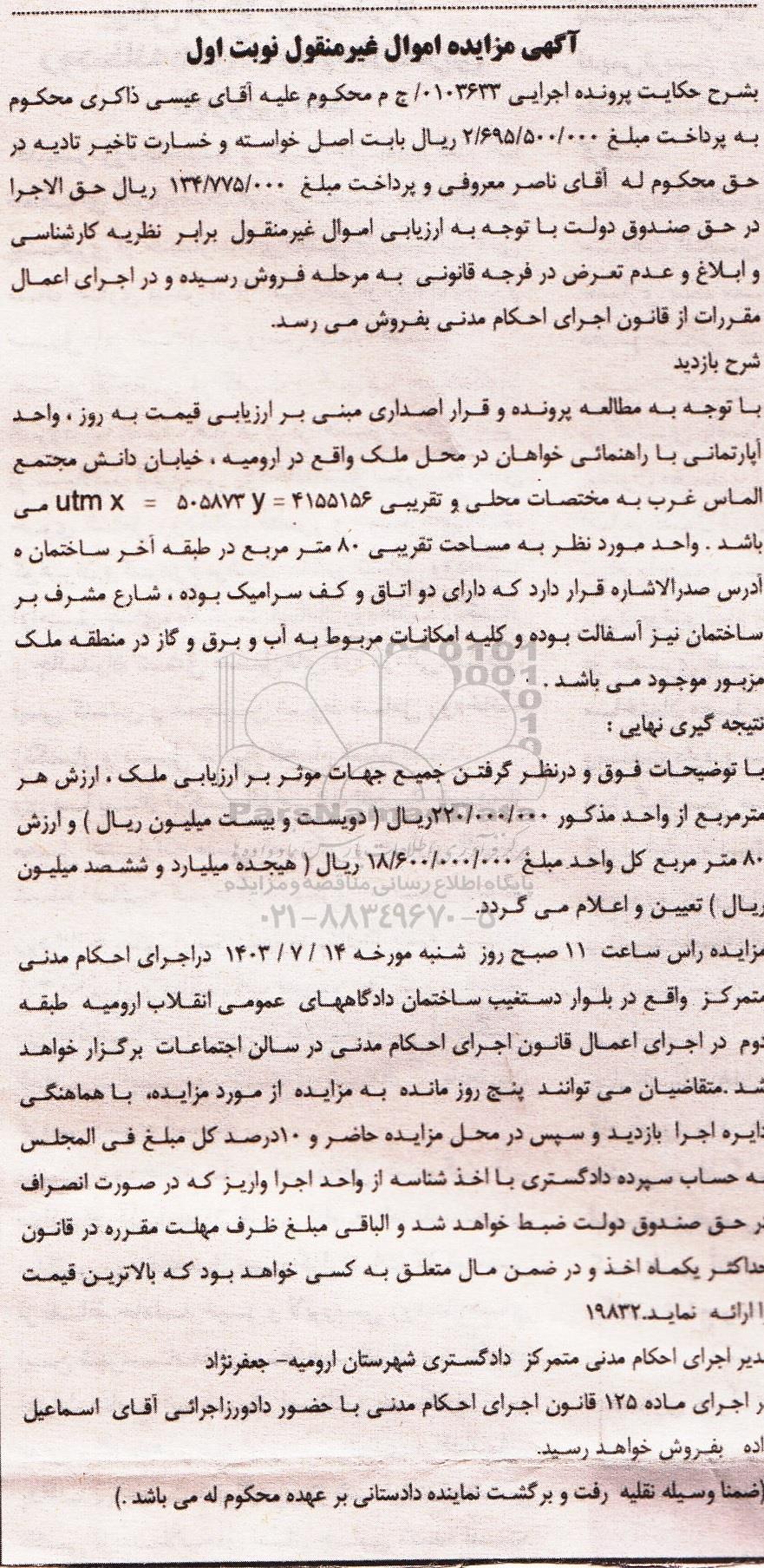 آگهی مزایده اموال غیرمنقول نوبت اول ؟