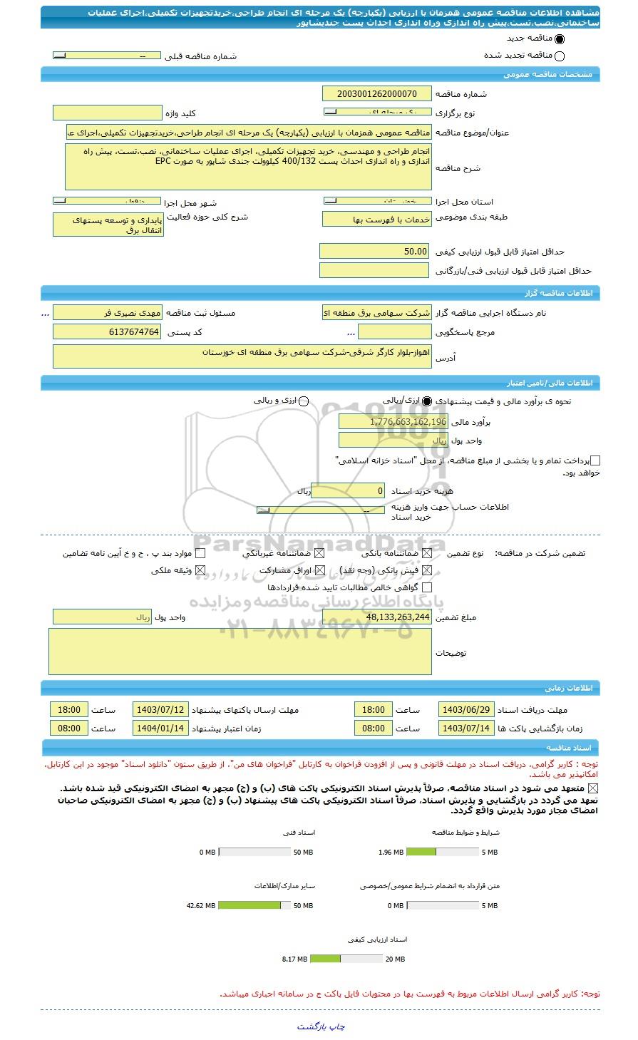 مبلغ تضمین | 48,133,263,244 | واحد پول | ریال |