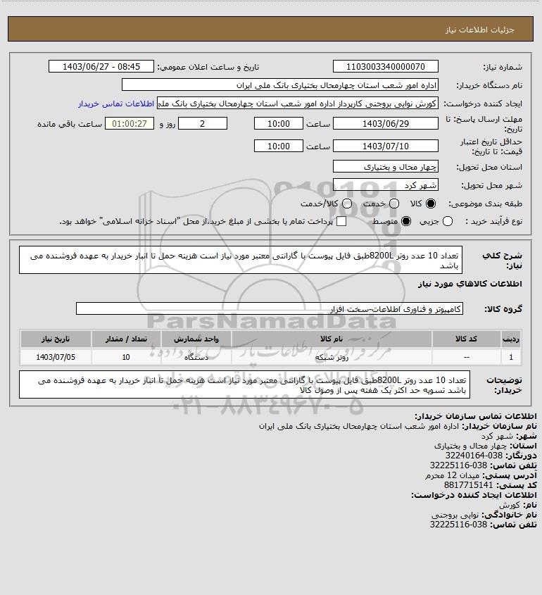 نام سازمان خریدار: اداره امور شعب استان چهارمحال بختیاری بانک ملی ایران