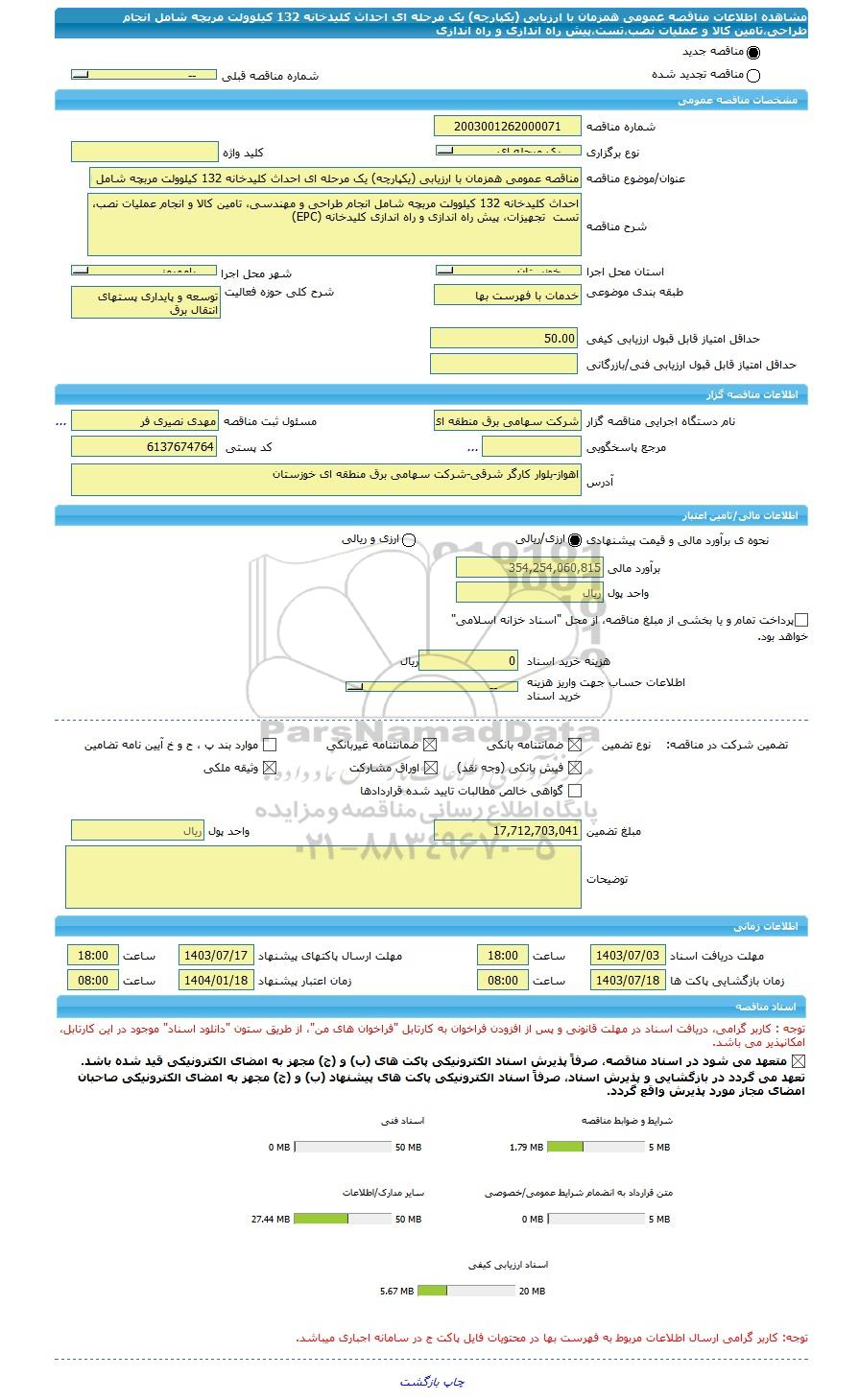 مبلغ تضمین | 17,712,703,041 | واحد پول | ریال |