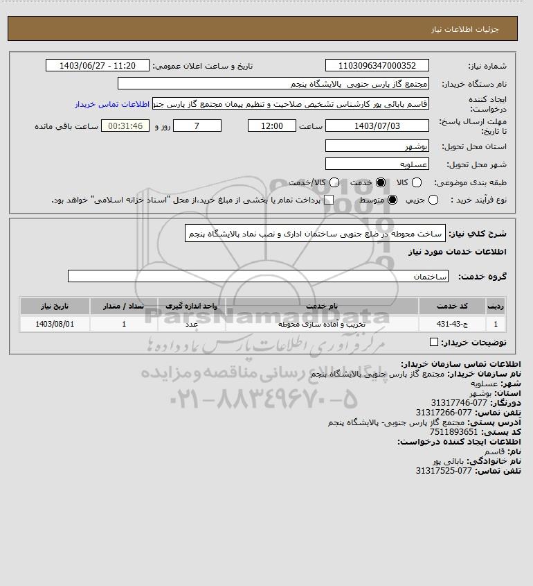نام دستگاه خریدار:مجتمع گاز پارس جنوبی پالایشگاه پنجم