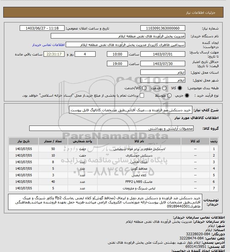 نام دستگاه خریدار:مدیریت پخش فرآورده های نفتی منطقه ایلام
