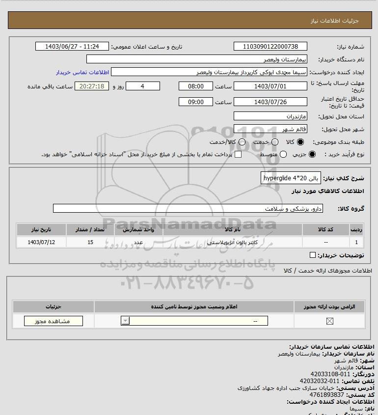 شرح کلی نیاز: بالن hyperglide 4*20