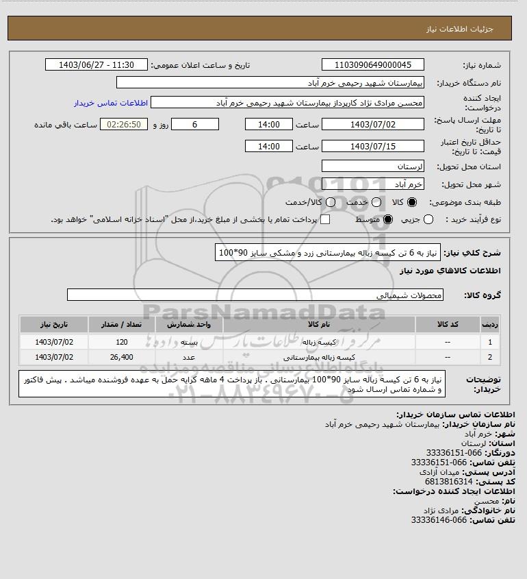| 2 | -- | کیسه زباله بیمارستانی | عدد | 26,400 | 1403/07/02 |