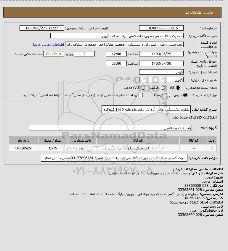 نام دستگاه خریدار:جمعیت هلال احمر جمهوری اسلامی ایران استان قزوین