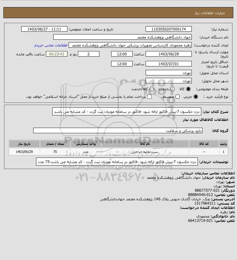شرح کلی نیاز: درن جکسون 7-پیش فاکتور ارائه شود -فاکتور در سامانه مودیان ثبت گردد - کد مشابه می باشد