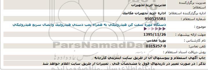 اداره برگزارکننده استعلام: اداره خريد تجهيزات مكانيك