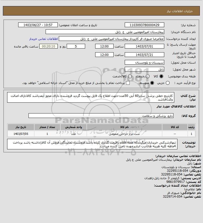 نام دستگاه خریدار:بیمارستان امیرالمومنین علی ع زابل