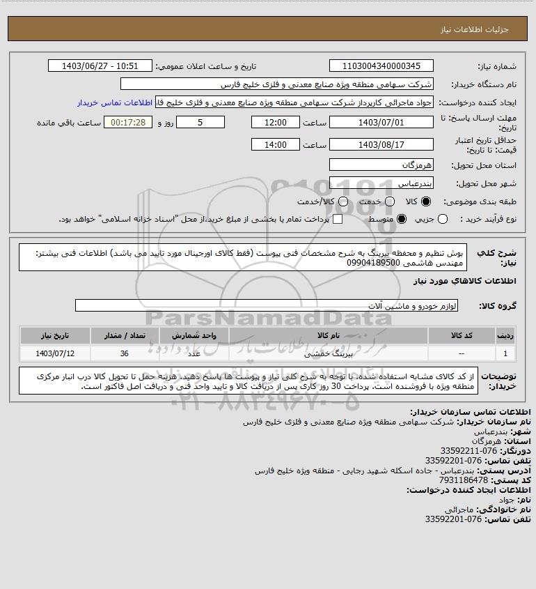 | 1 | -- | بیرینگ خمشی | عدد | 36 | 1403/07/12 |