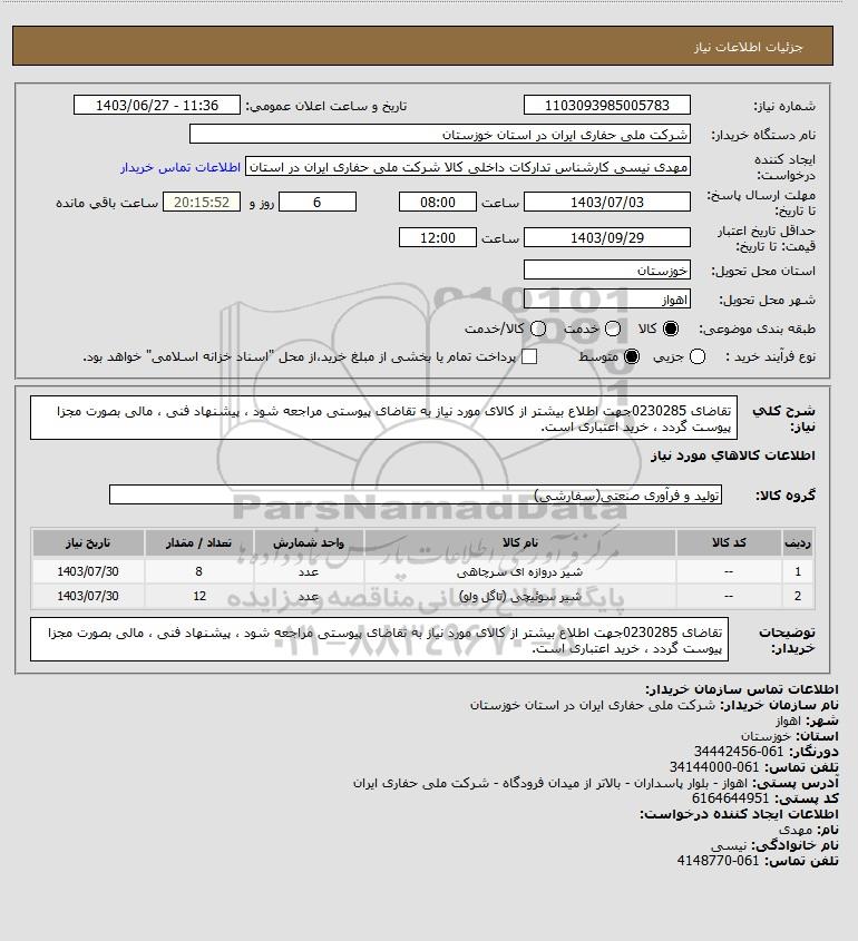 نام دستگاه خریدار:شرکت ملی حفاری ایران در استان خوزستان