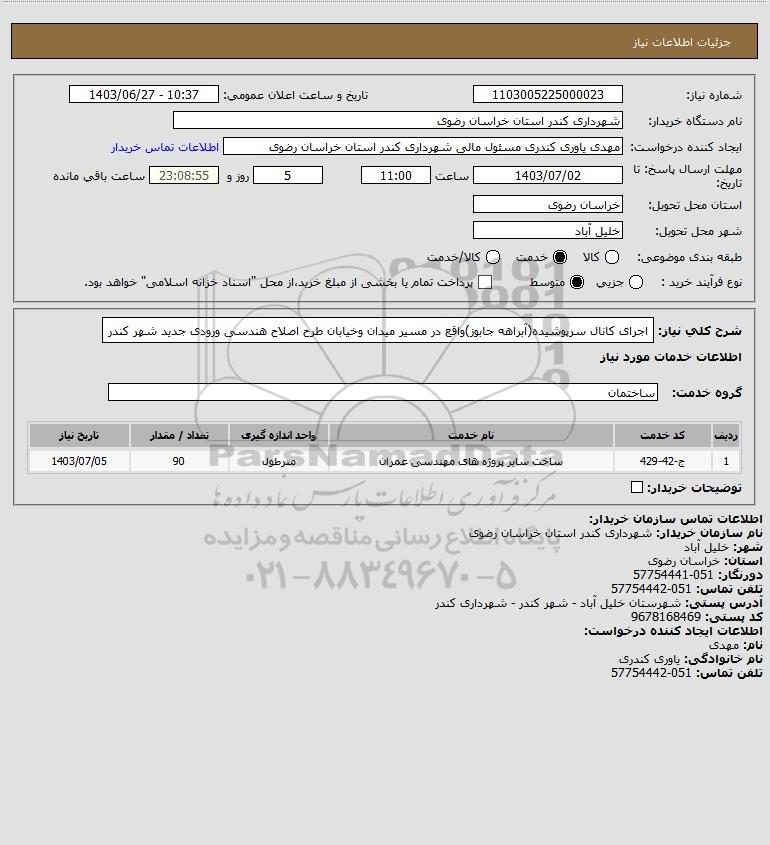 نام دستگاه خریدار:شهرداری کندر استان خراسان رضوی