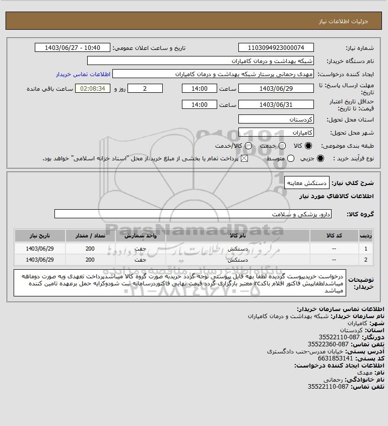 نام دستگاه خریدار:شبکه بهداشت و درمان کامیاران