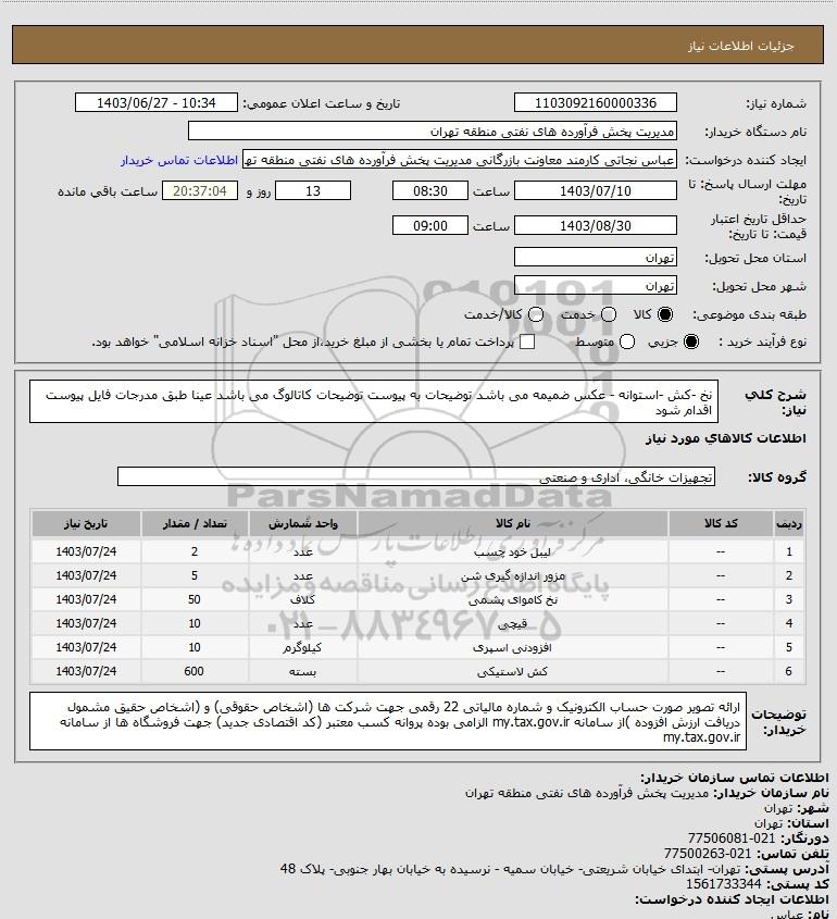 نام دستگاه خریدار:مدیریت پخش فرآورده های نفتی منطقه تهران