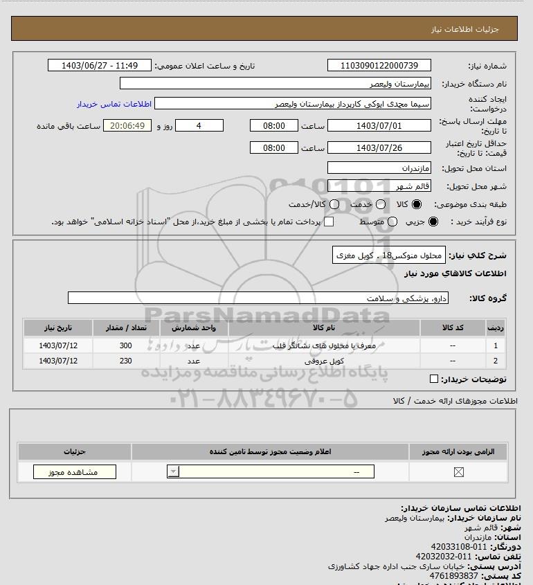 شرح کلی نیاز: محلول منوکس18 . کویل مغزی