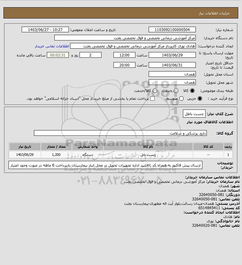 نام دستگاه خریدار:مرکز آموزشی درمانی تخصصی و فوق تخصصی بعثت