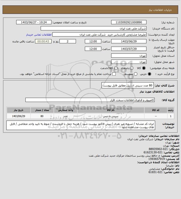 استعلام 80 عدد سینی استیل مطابق فایل پیوست, استعلام 80 عدد سینی استیل مطابق فایل پیوست