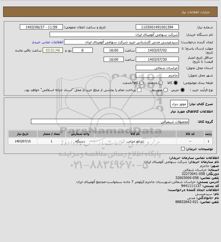 نام سازمان خریدار: شرکت سهامی آلومینای ایران