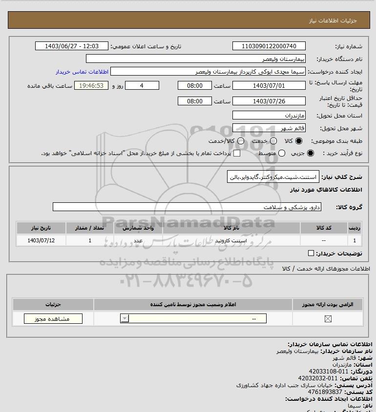 شرح کلی نیاز: استنت.شیت.میکروکتتر.گایدوایر.بالن