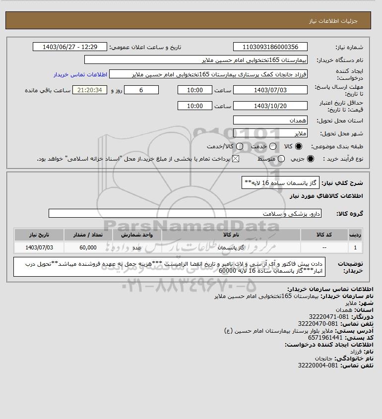 | 1 | -- | گاز پانسمان | عدد | 60,000 | 1403/07/03 |