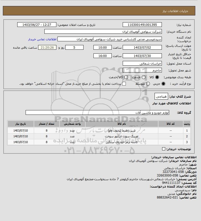 نام سازمان خریدار: شرکت سهامی آلومینای ایران