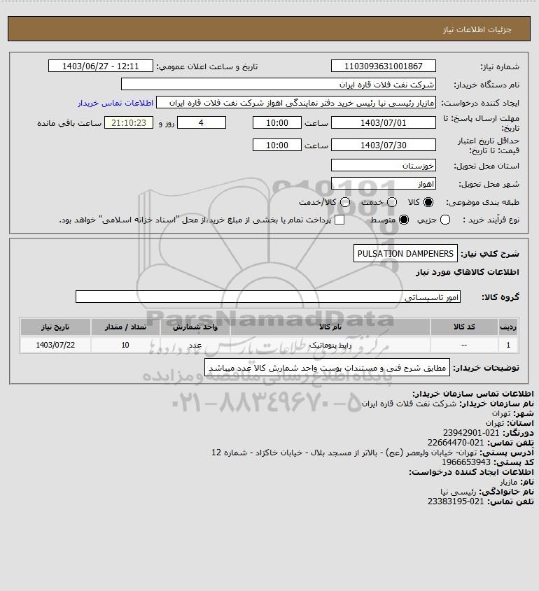 استعلام PULSATION DAMPENERS, استعلام PULSATION DAMPENERS