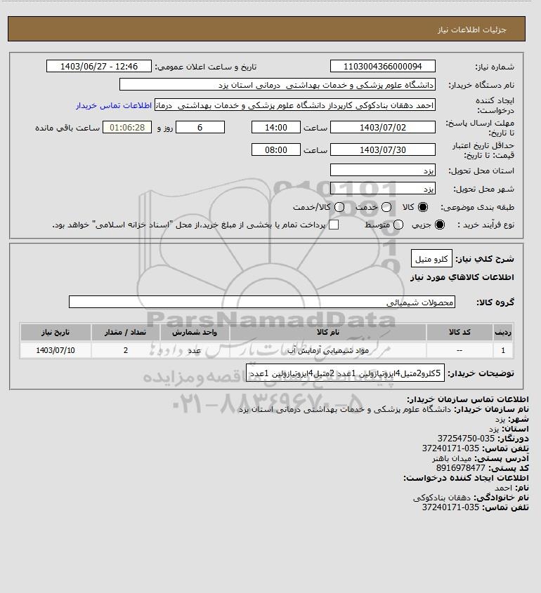 نام دستگاه خریدار:دانشگاه علوم پزشکی و خدمات بهداشتی درمانی استان یزد