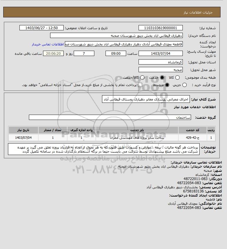 نام دستگاه خریدار:دهیاری قیطاس اباد بخش دینور شهرستان صحنه