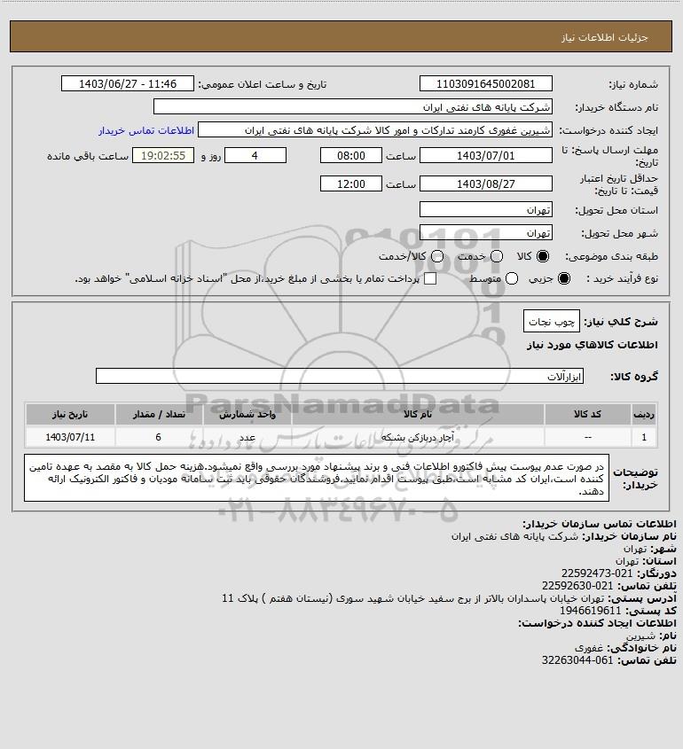 نام سازمان خریدار: شرکت پایانه های نفتی ایران