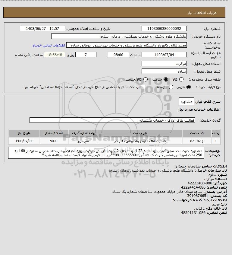 توضیحات خریدار:مشاوره جهت اخذ مجوز کمیسیون ماده 23 قانون الحاق 2 جهت افزایش ظرفیت پروژه احداث بیمارستان مدرس ساوه از 160 به 250 تخت آموزشی-تماس جهت هماهنگی 09123555891**بند 11 فرم پیشنهاد قیمت حتما مطالعه شود*
