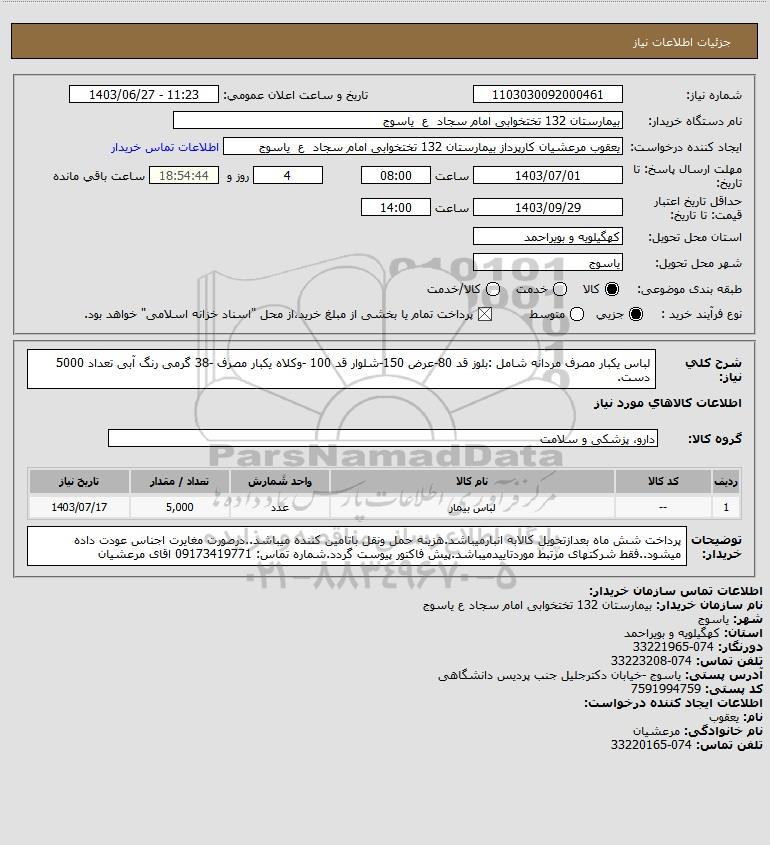 1 -- لباس بیمار عدد 5,000 1403/07/17