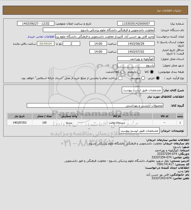 نام دستگاه خریدار:معاونت دانشجویی و فرهنگی دانشگاه علوم پزشکی یاسوج